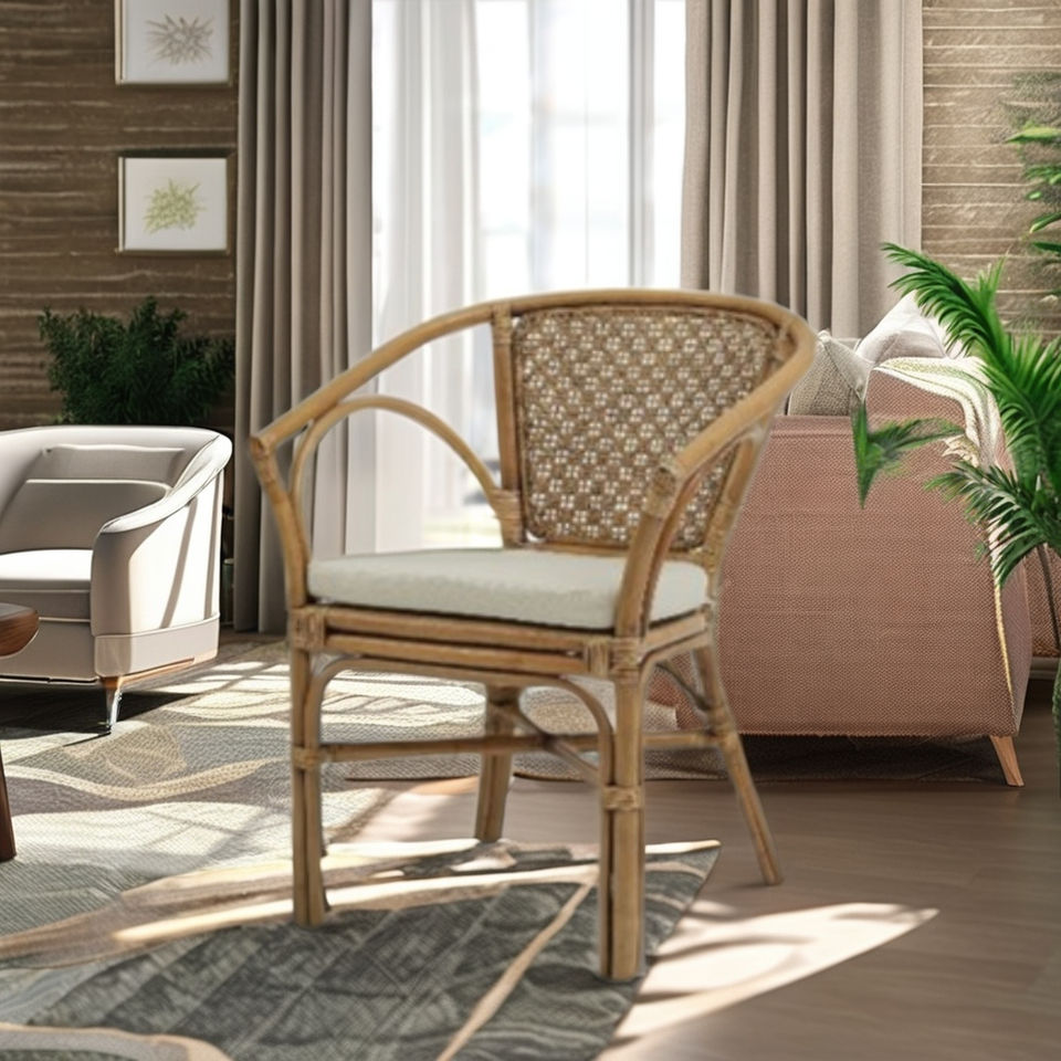 Mesa de Centro de Ratán Mahera, Diseño Moderno, Elegante y Acogedor, Muebles de Sala de Estar, Sillón Relajante y Cómodo con Marco de Madera Artesanal