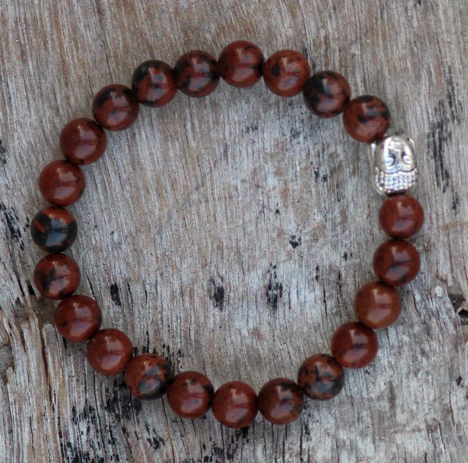 Pulsera Ajustable Unisex con Cuentas de Obsidiana Caoba, Estilo Religioso Clásico, 8MM, Gemas Sameer, Aniversarios