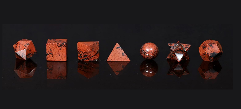 Juego de geometría de cristal de obsidiana de caoba, piedra natural sagrada tallada para curar sólidos platónicos, formas geométricas únicas