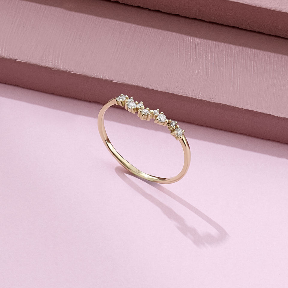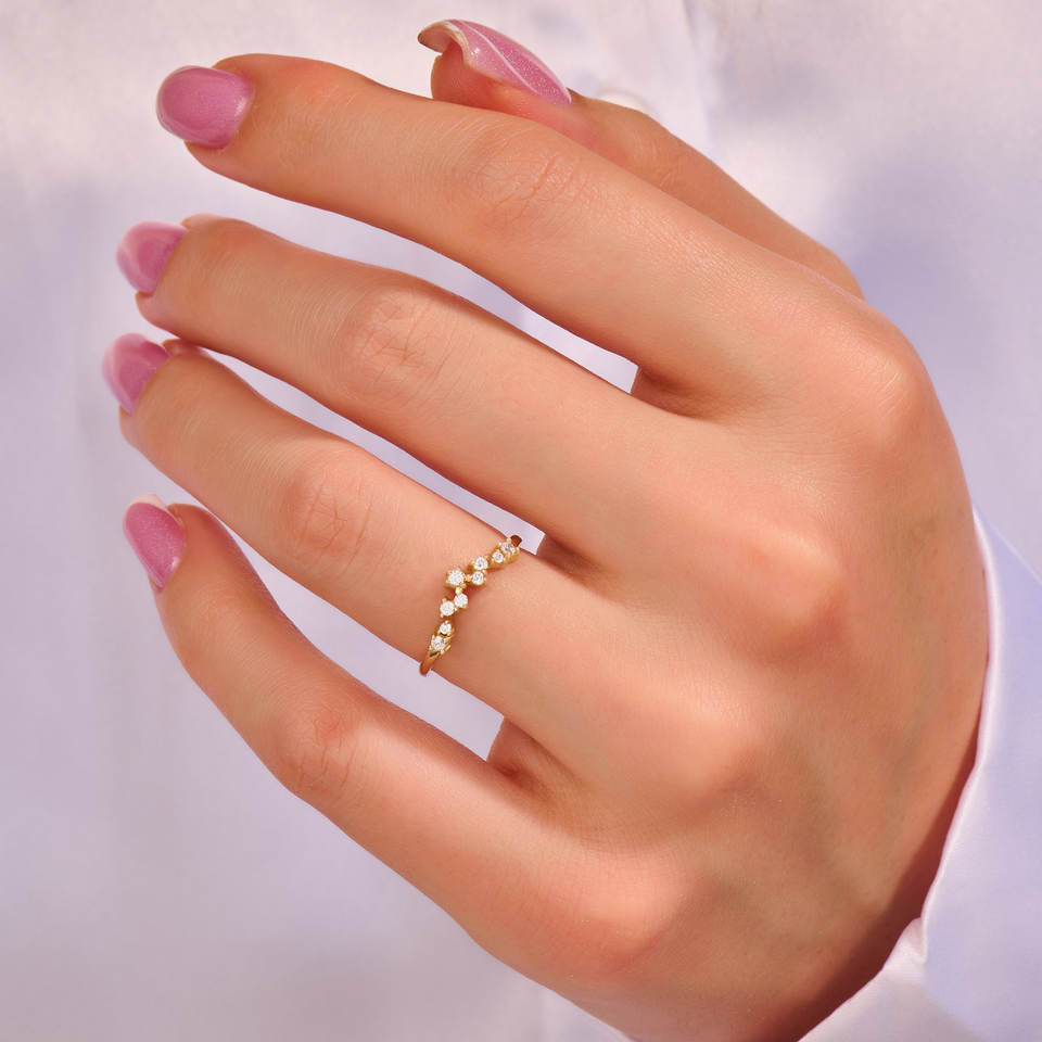 Anillo Apilable de Oro Sólido de 14K MaiYi, Anillo con Racimo de Diamantes, Anillo con Diamantes Naturales para Mujer