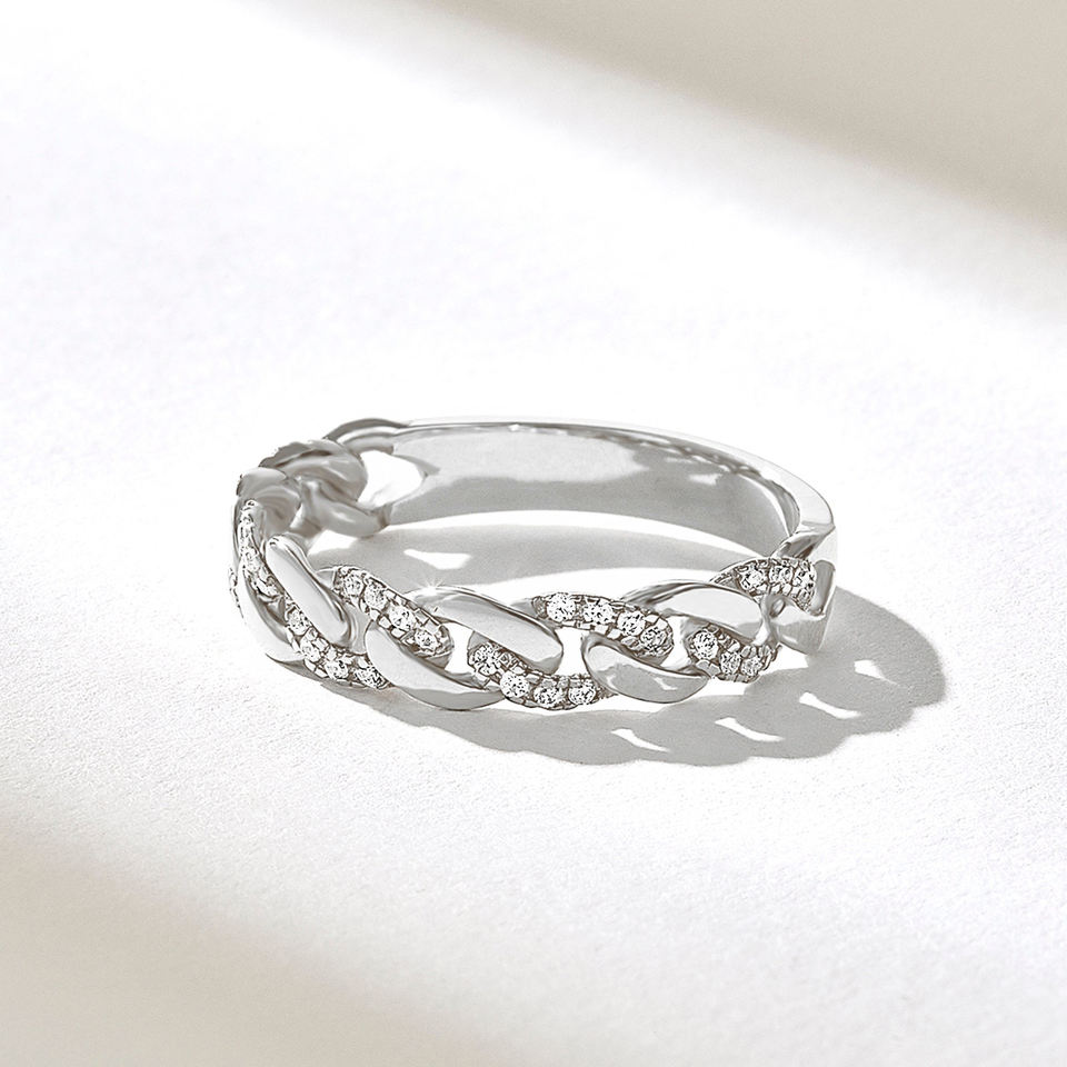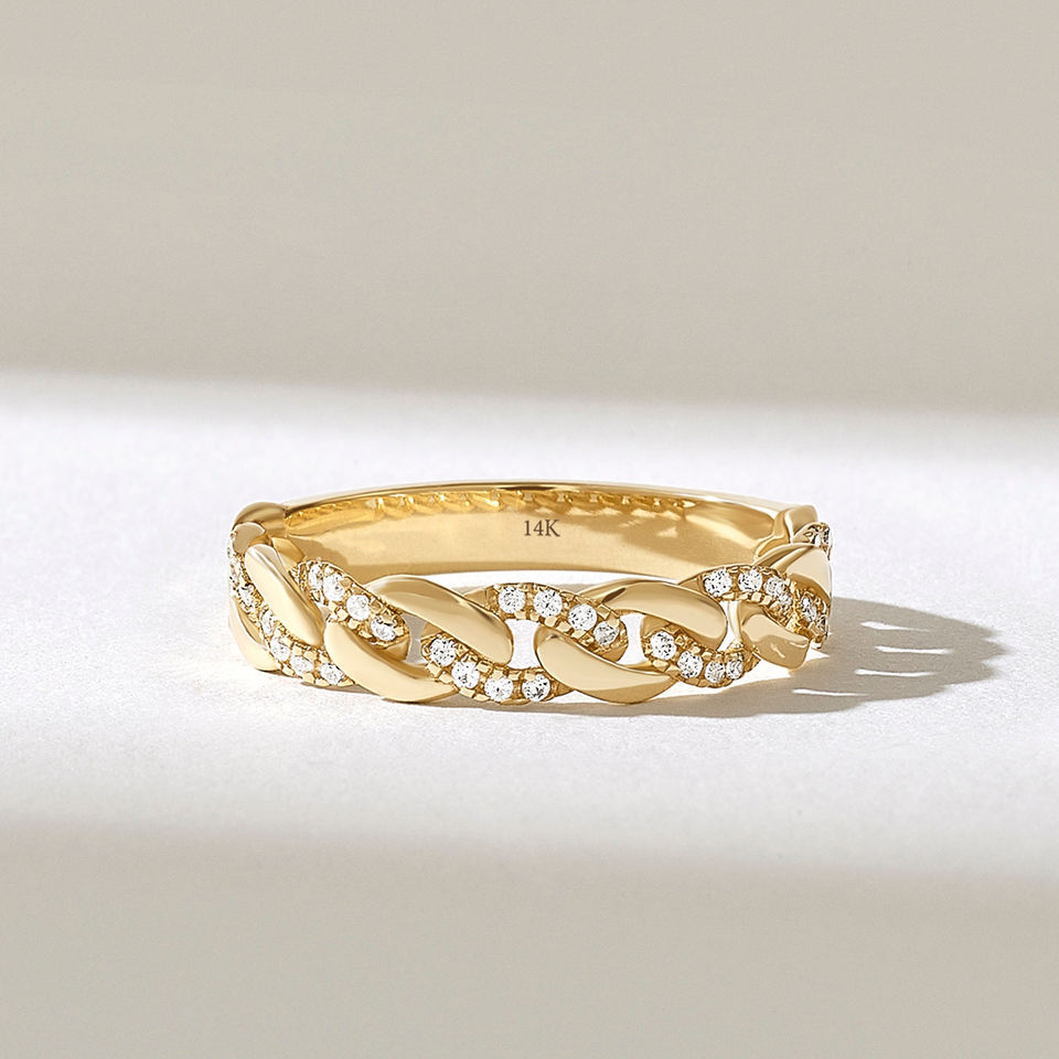 Forma del anillo::Anillo de Moissanita con Cadena Cubana de 14K