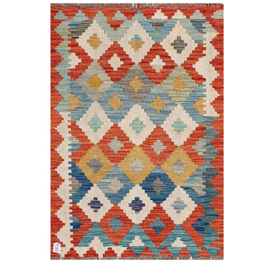 Alfombra Kilim de Maimana, Afganistán, 115 x 81 cm, Alfombra Afgana Tradicional Hecha a Mano