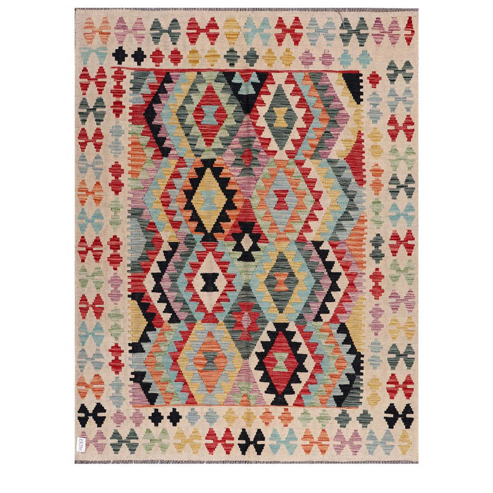 Alfombra Kilim de Maimana, Afganistán, 193 x 151 cm, Textil para el Hogar, Alfombra Afgana Tradicional Hecha a Mano