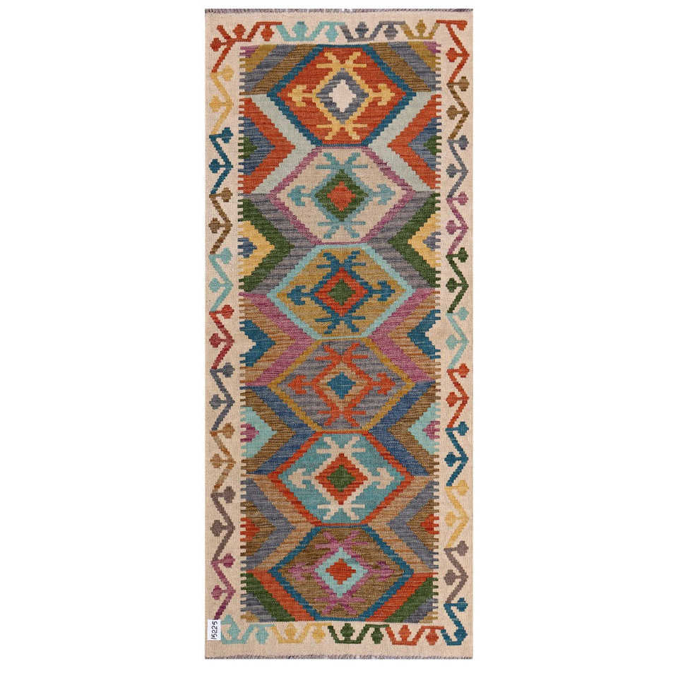 Alfombra Kilim de Maimana, Afganistán, 196 x 83 cm, Textil para el Hogar, Diseño Tradicional Hecho a Mano para una Decoración Duradera