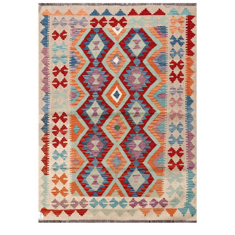 Alfombra Kilim de Maimana, Afganistán, 204 x 147 cm, Alfombras y Conjuntos Tradicionales Afganos