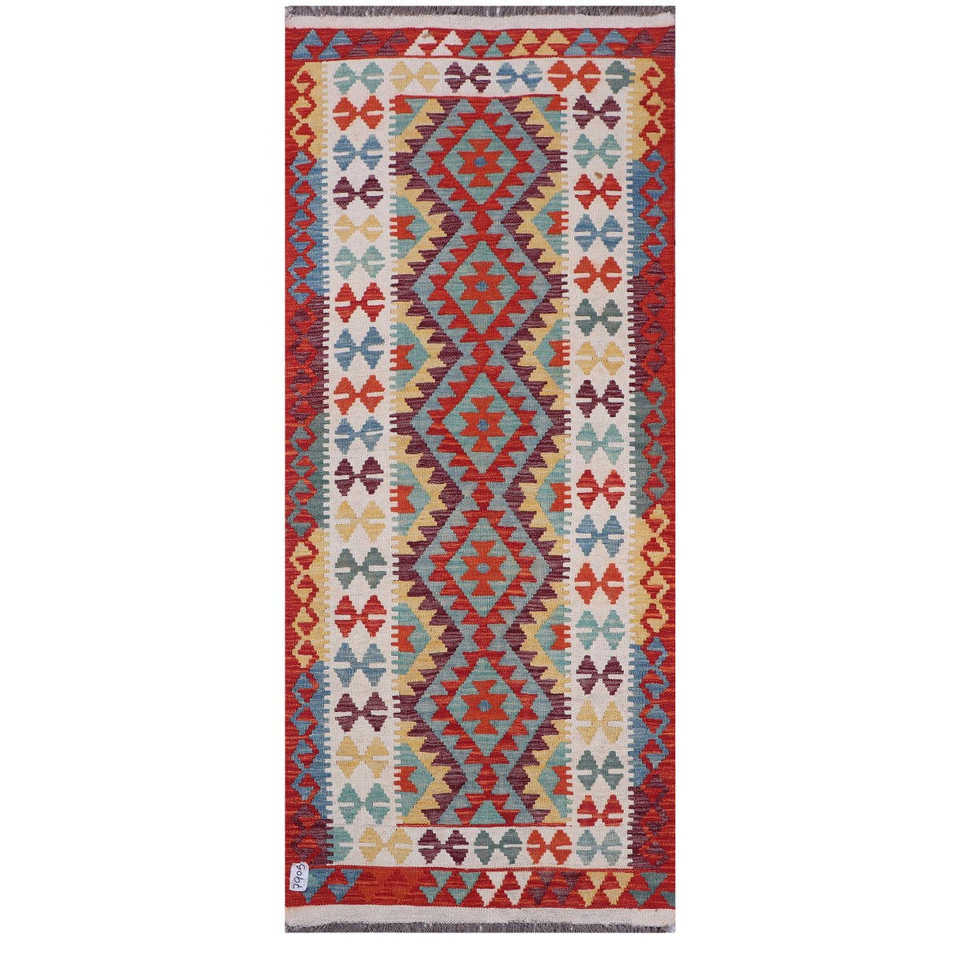 Alfombra Kilim de Maimana, Afganistán, 204 x 86 cm, Alfombras y Juegos de Alfombras Tradicionales Afganas