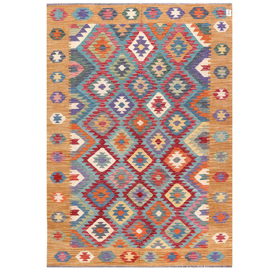 Alfombra Kilim de Maimana, Afganistán, 247 x 178 cm, Pieza de Arte Decorativa para el Hogar