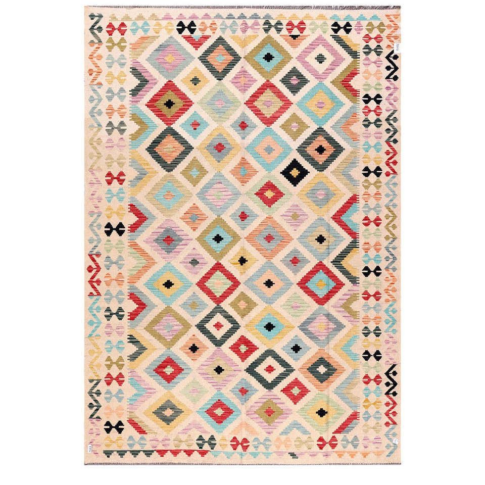 Alfombra Kilim de Maimana, Afganistán, 291 x 204 cm, Tapiz
