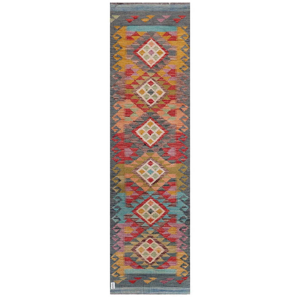 Alfombra Kilim de Maimana, Afganistán, 301 x 84 cm