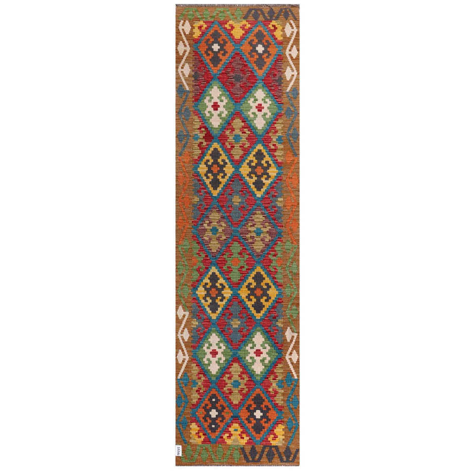 Alfombra Kilim de Maimana, Afganistán, 308 x 84 cm