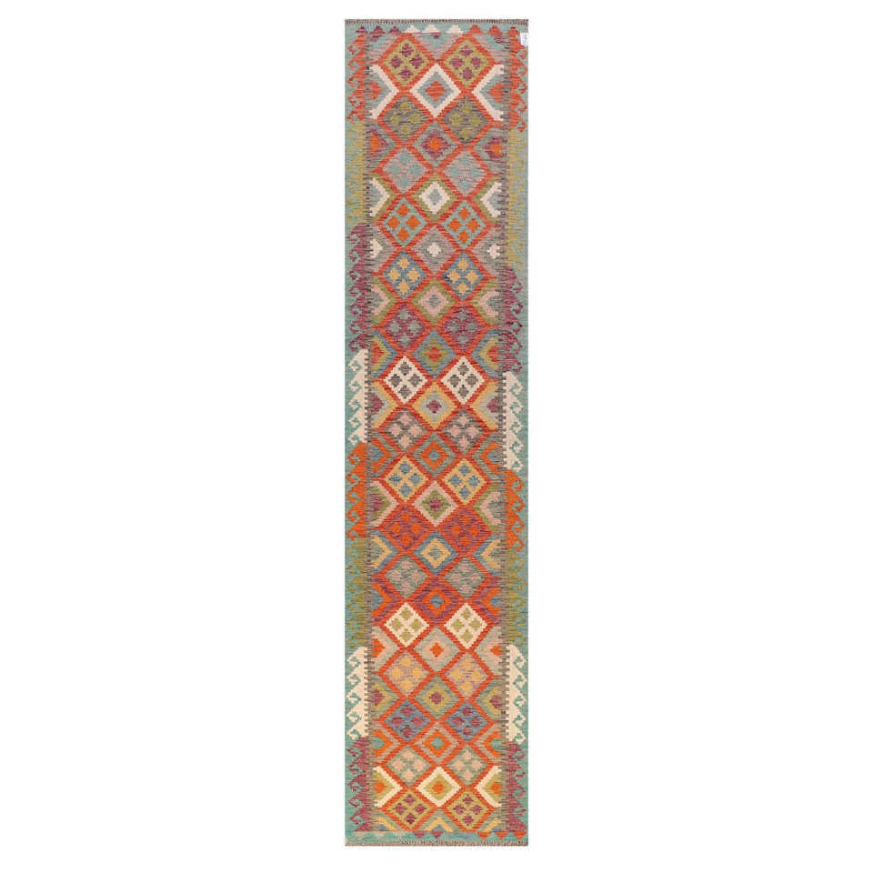 Alfombra Kilim de Maimana, Afganistán, 388 x 83 cm