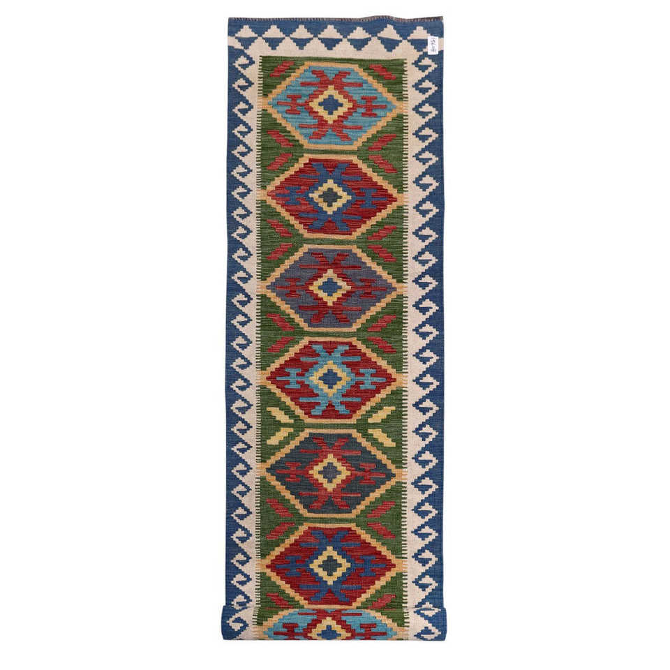 Alfombra Kilim de Maimana, Afganistán, 394 x 83 cm