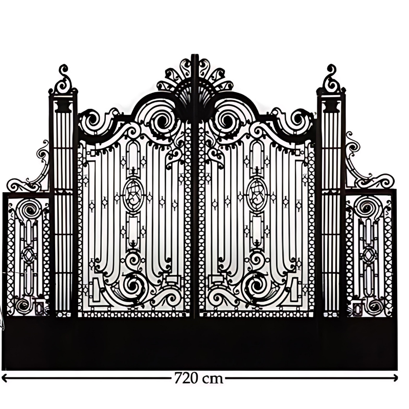 Puerta principal de hierro con un diseño atrevido de doble puerta, fabricada en Vietnam para entradas de villas y entradas residenciales de lujo.