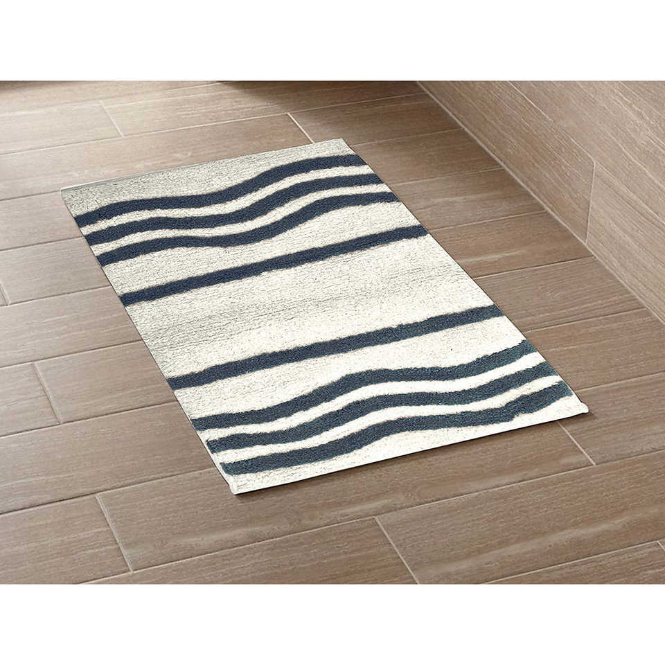 Alfombra de Baño Moderna a Rayas Mainstays, Súper Suave, de Algodón, Súper Absorbente y Antideslizante, Lavable a Máquina, 20 x 30, Color Azul Marino
