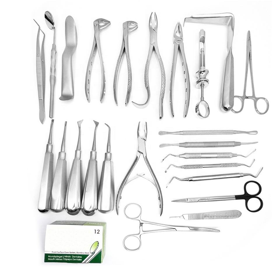 Kit de instrumentos quirúrgicos dentales de acero inoxidable Premium profesional 25PCS Manual de extracción de dientes principales Zarnab quirúrgico CE