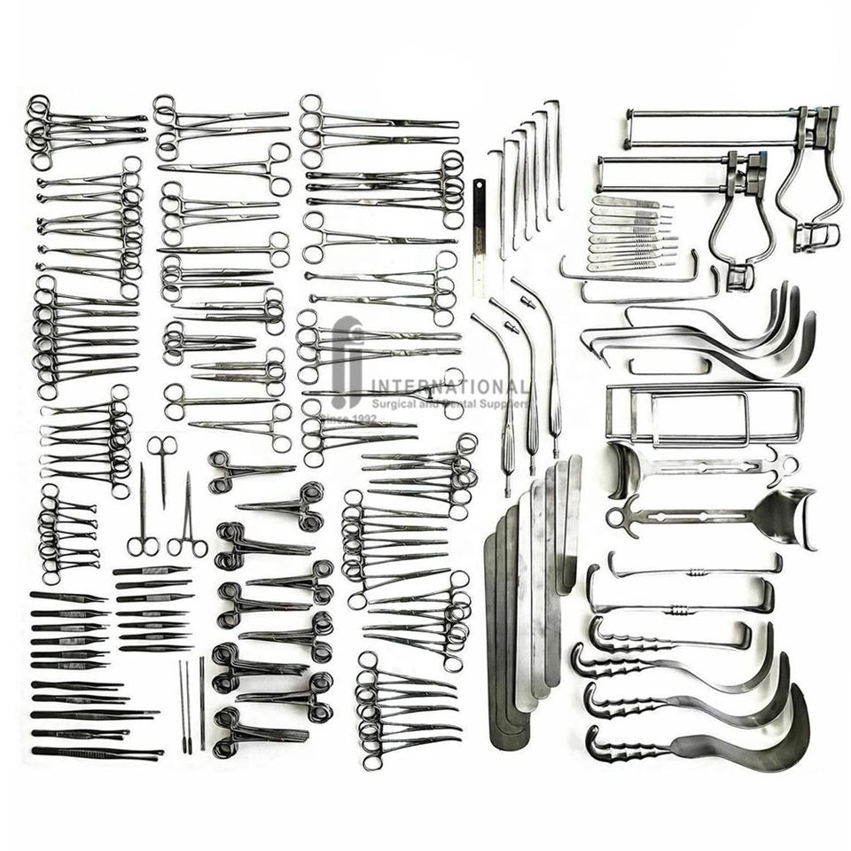 Juego de instrumentos quirúrgicos de acero inoxidable para laparotomía mayor, 197 Uds., juego de cirugía alemana de calidad superior pasivado antioxidante