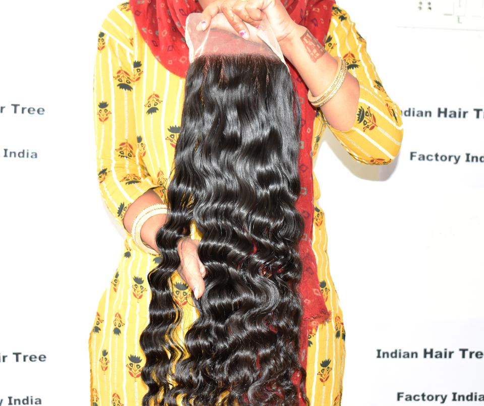 Cabello humano virgen sin procesar hecho en La India, aspecto Natural, cierre suave y sedoso, rizado, venta al por mayor, proveedor alineado de cutícula India cruda
