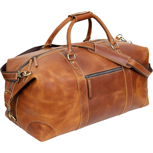 Haga que el empaque sea sencillo con esta bolsa de lona 100% de cuero genuino que ofrece un amplio acceso, base estructurada y correa cómoda.
