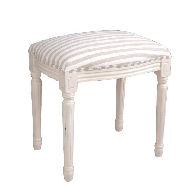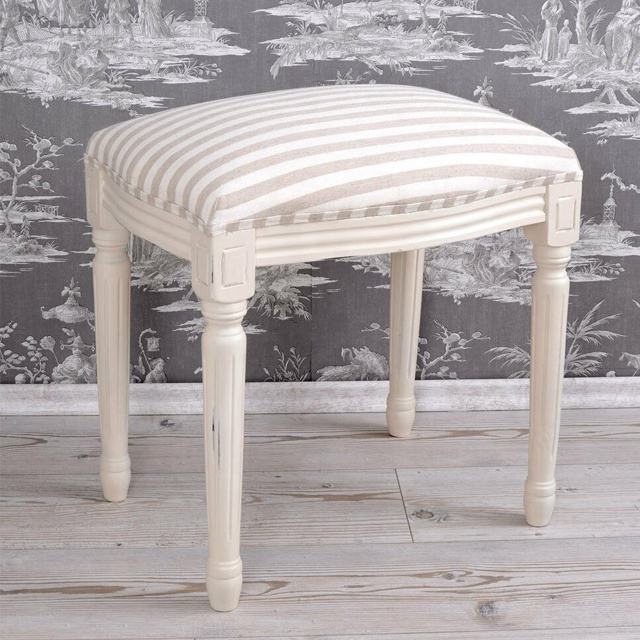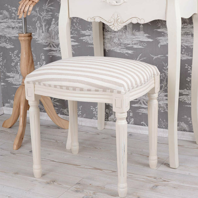 Taburete de Maquillaje, Estilo Shabby Chic, Asiento de Madera Blanco Antiguo