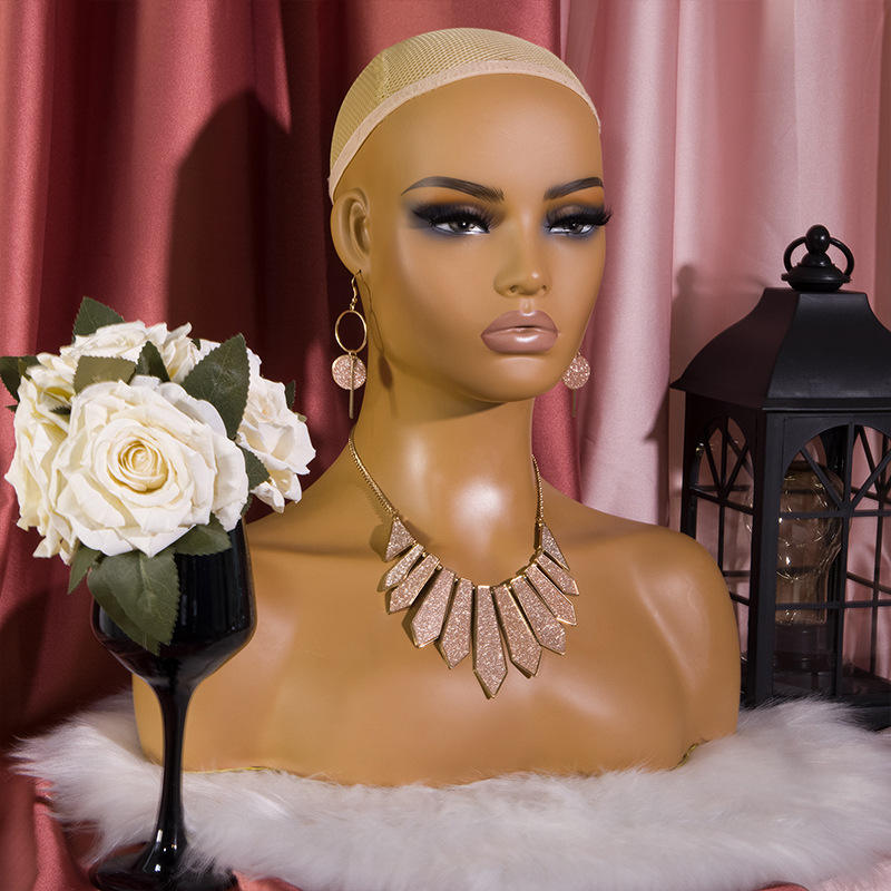 Maniquí de PVC Realista con Cabeza y Hombros para Exhibición de Pelucas, Modelo Afroamericana