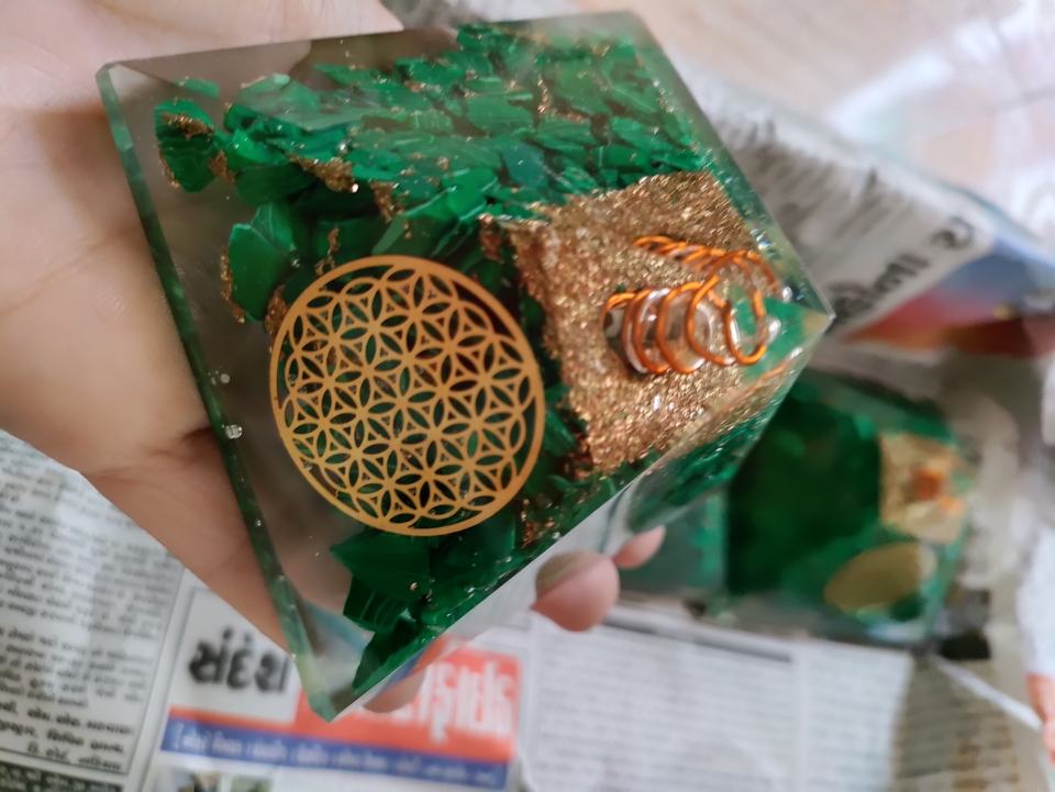 Pirámides de orgonita de malaquita, venta al por mayor, resina de cristal Natural de malaquita, pirámide de orgonita energética, pirámide de orgonita de cristal curativo