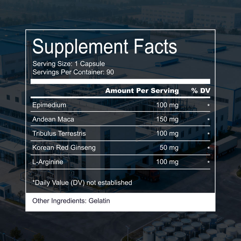 Epimedium, Maca (Lepidium meyenii), extracto de Tribulus terrestris, L-Arginina