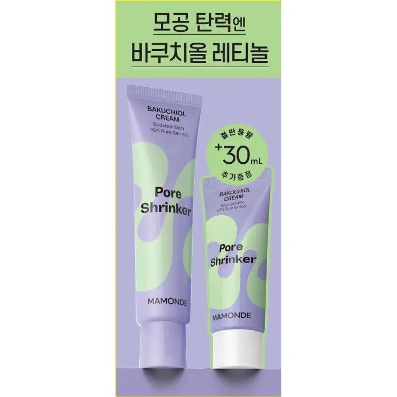 Mamonde Pore Shrinker Bakuchiol Cream 60mL Crema facial de alta calidad en juego especial con 30mL Regalo gratis
