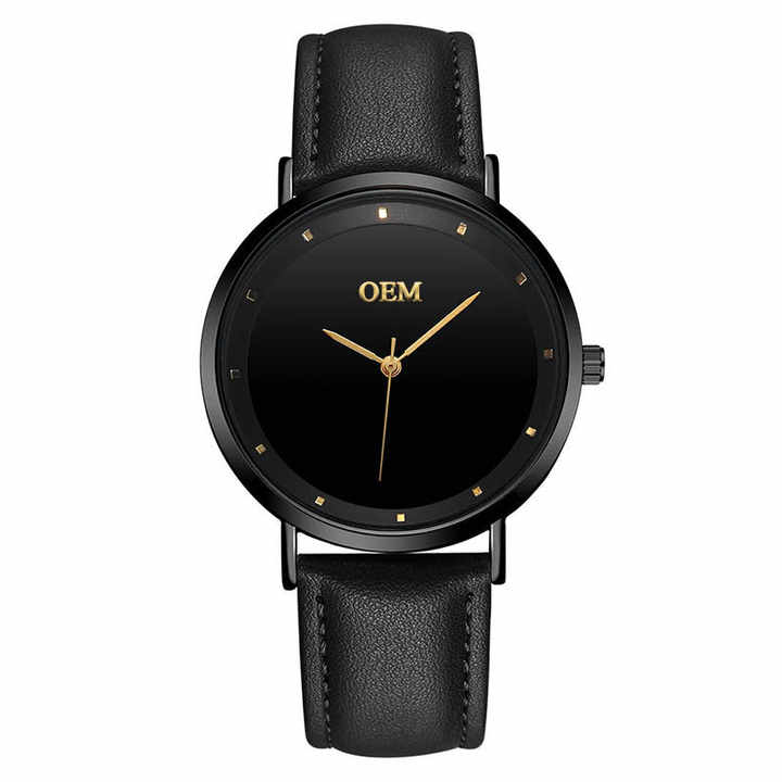 Reloj de Hombre de Marca Propia con Correa de Cuero Genuino, Reloj de Cuarzo Japonés para Hombre, Logotipo Personalizado Grabado, MOQ Bajo, Económico
