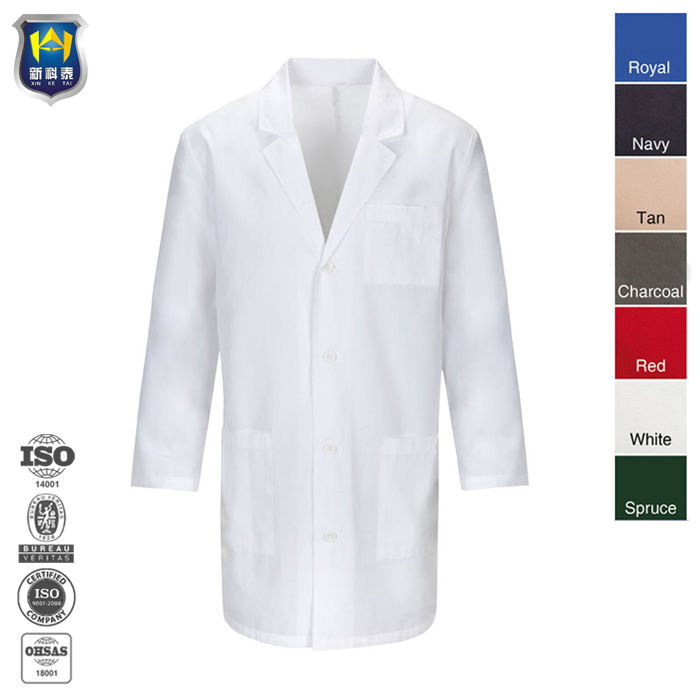 Nombre:Hombre mujeres enfermera uniformes médicos diseños médico bata de laboratorio blanco