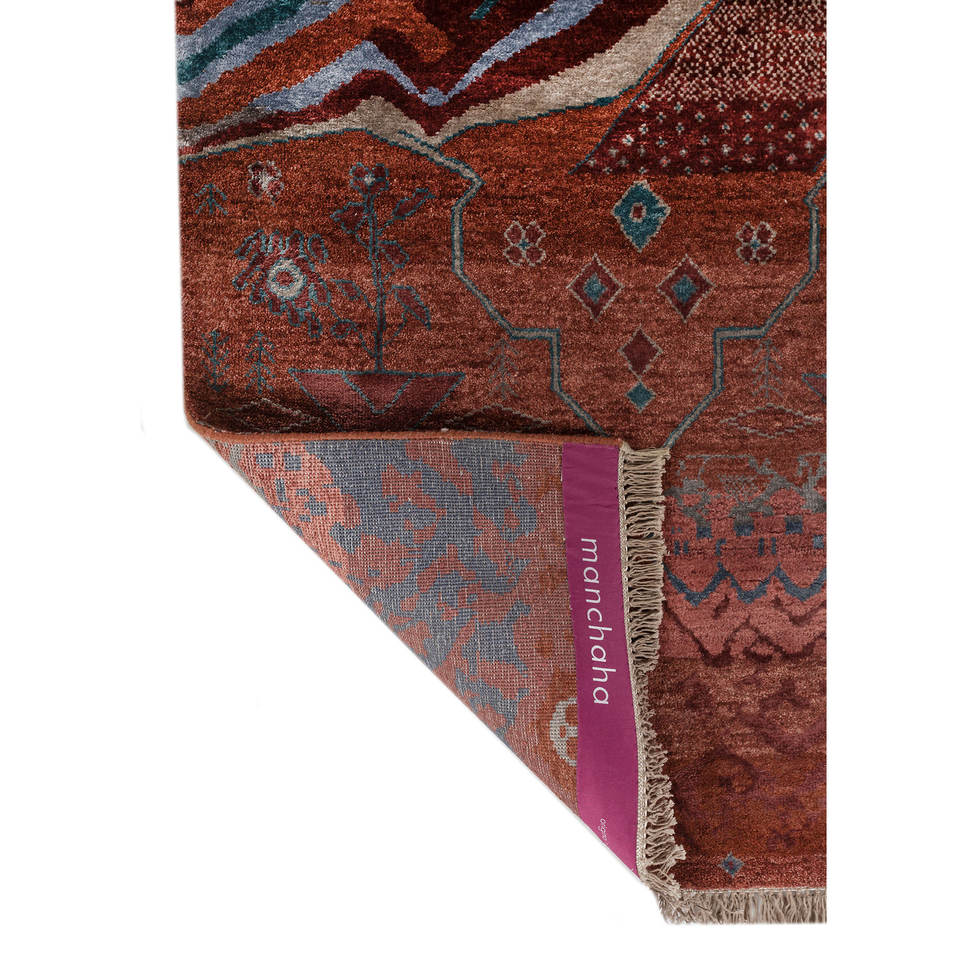 Alfombras Manchaha de Lana y Seda de Bambú con Patrón Abstracto Rojo y Naranja, Anudadas a Mano para Uso Doméstico-Les-2702 de Jaipur Rugs US