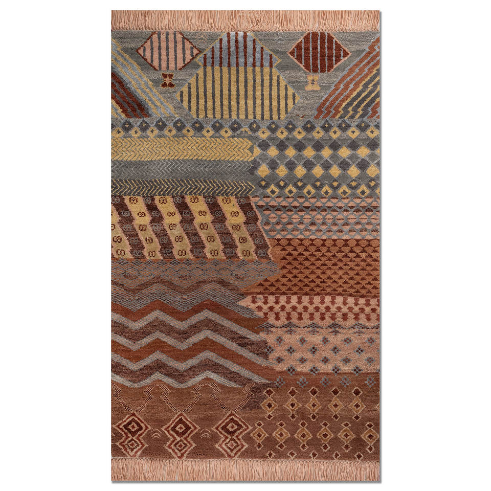 Alfombra Manchaha de Lana y Seda de Bambú con Patrón Geométrico Anudada a Mano en Rojo y Naranja - Para Uso Doméstico Les-2837
