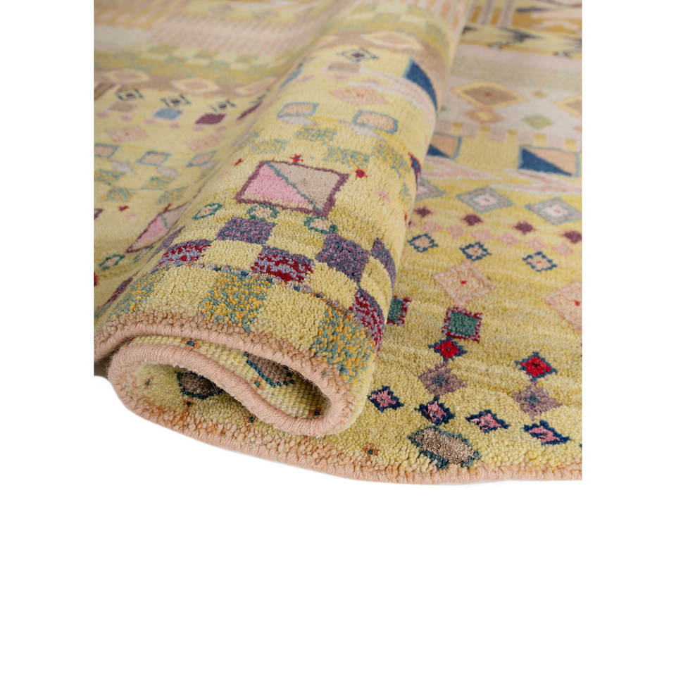 Alfombra Manchaha de Lana y Seda de Bambú con Patrón Geométrico Rojo y Naranja, Anudada a Mano para Uso Doméstico - Alfombras Jaipur US-Les-6008