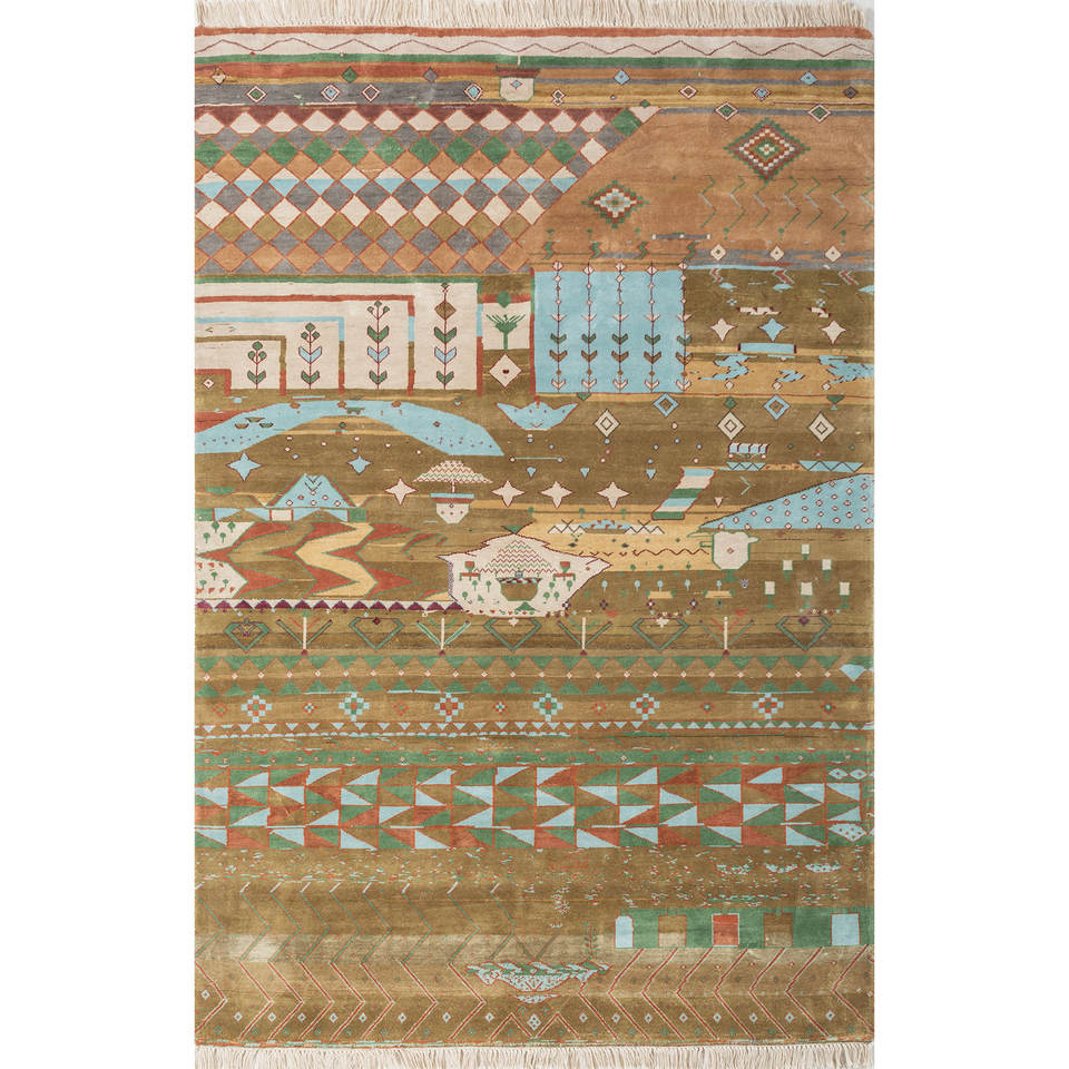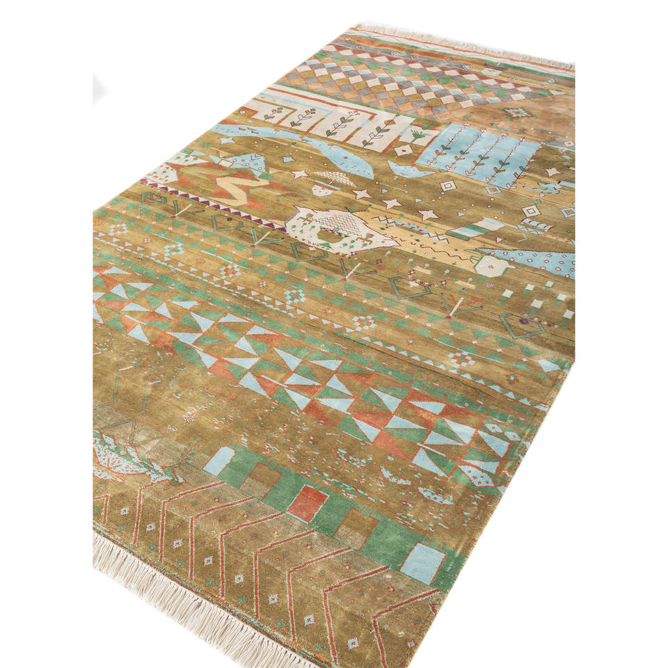 Alfombra de Seda Anudada a Mano Manchaha Gold, Diseño Geométrico de Gran Tamaño para el Hogar, para Sala de Estar, Pasillo, Modelo Rectangular LSL-312