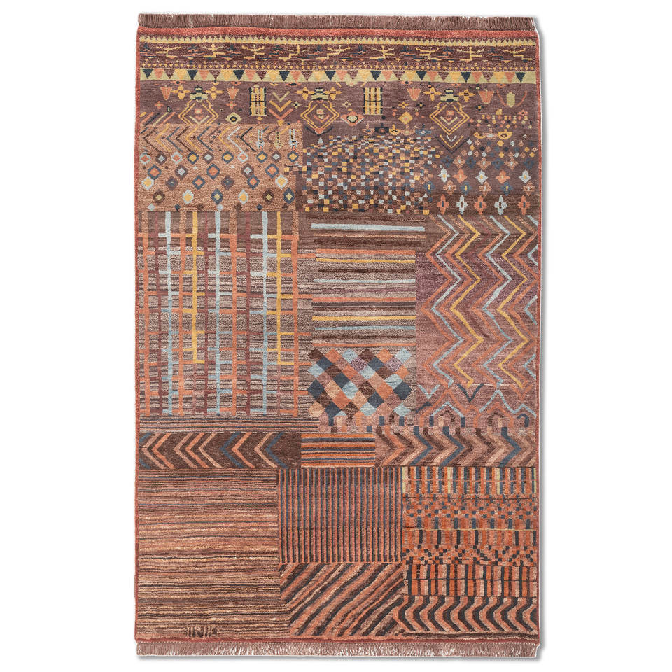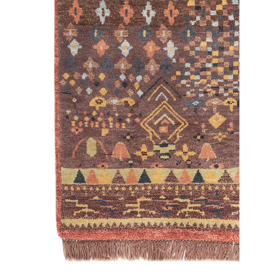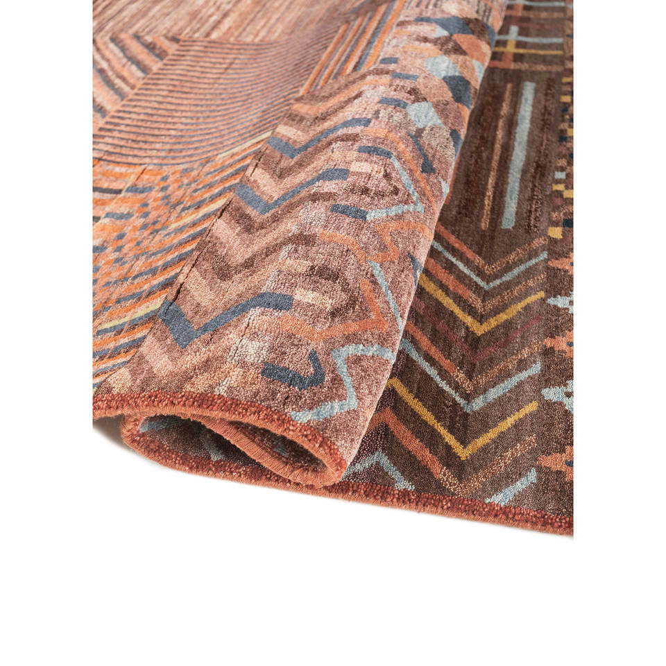 Alfombra Manchaha de Lana y Seda Anudada a Mano, Roja y Naranja con Patrón Geométrico para Decoración de Sala de Estar, Nueva Alfombra de 9x12 Lub-128