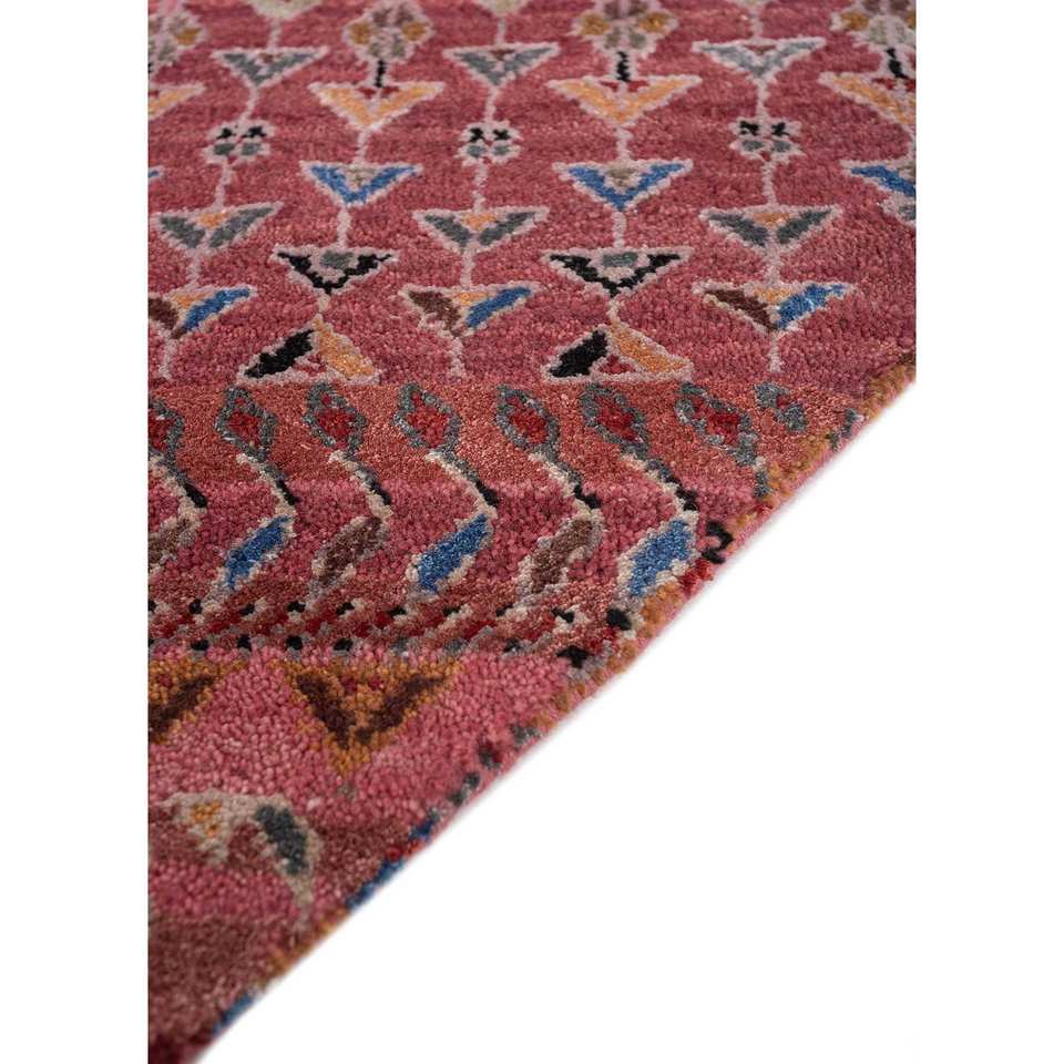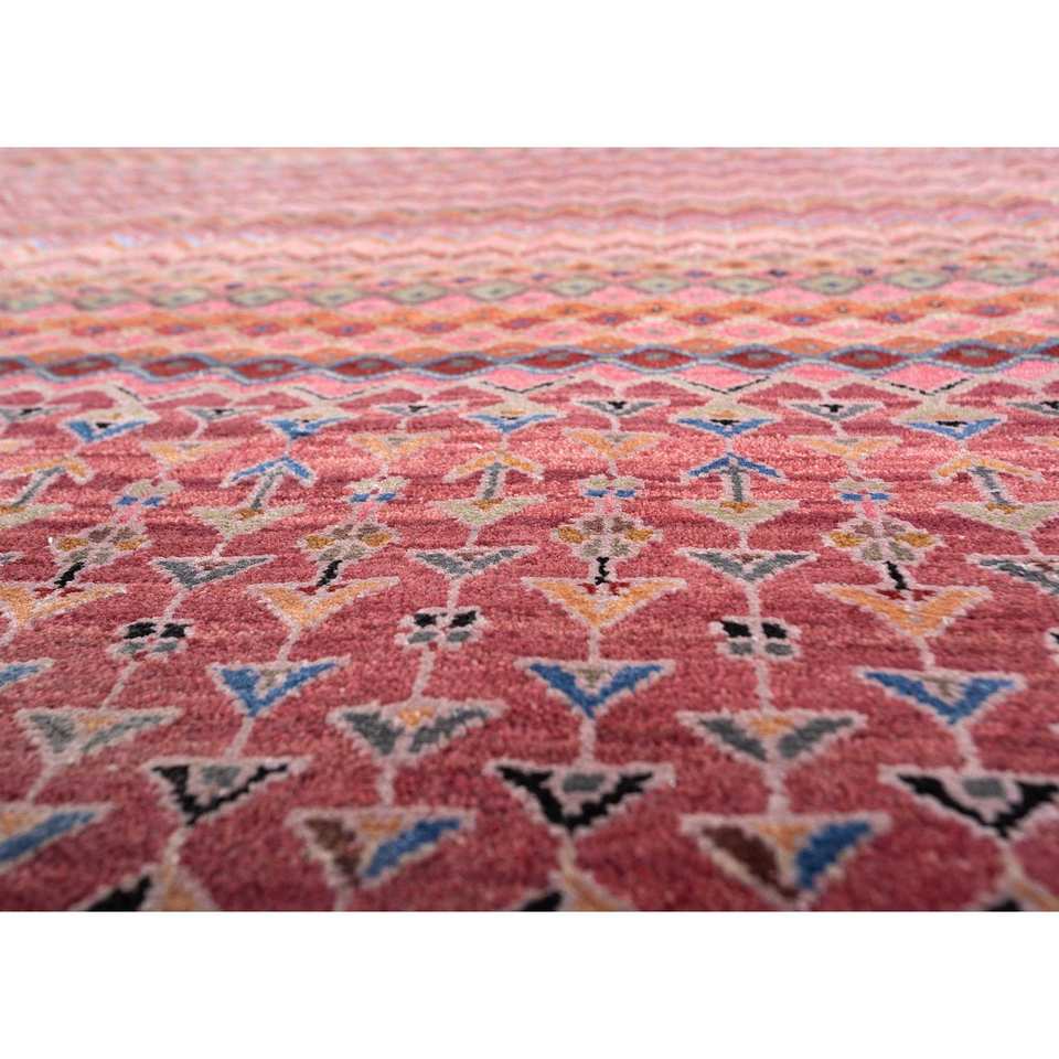 Alfombra Manchaha de Lana y Seda de Bambú con Patrón de Rayas Anudada a Mano en Rojo y Naranja - Para Uso Doméstico Les-6026