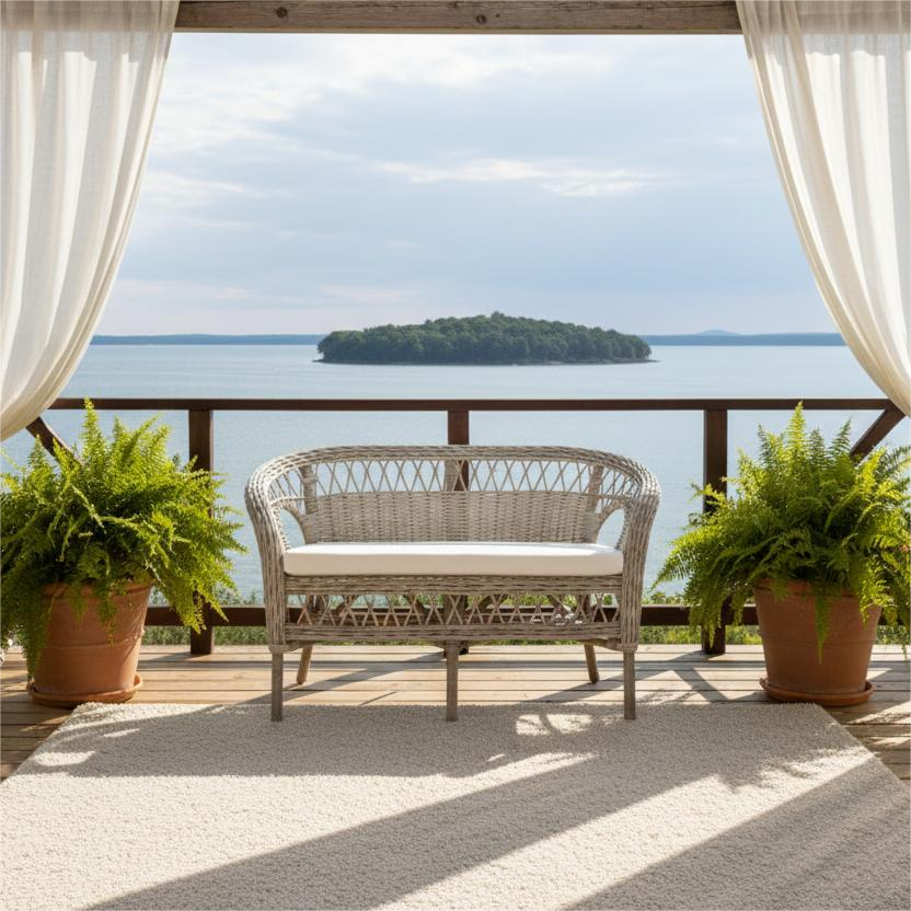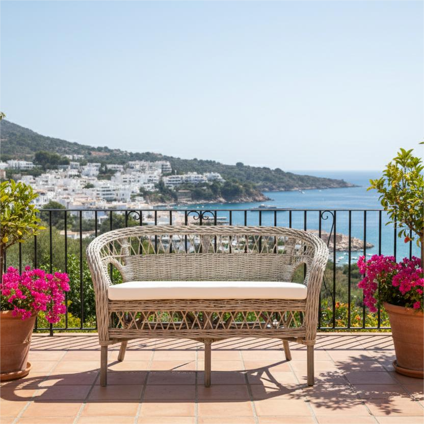 Sofá Mandalino de Dos Plazas, Diseño Asiático Hecho a Mano, Madera y Ratán, para Apartamentos y Hoteles, Mueble para el Hogar de Venta Caliente