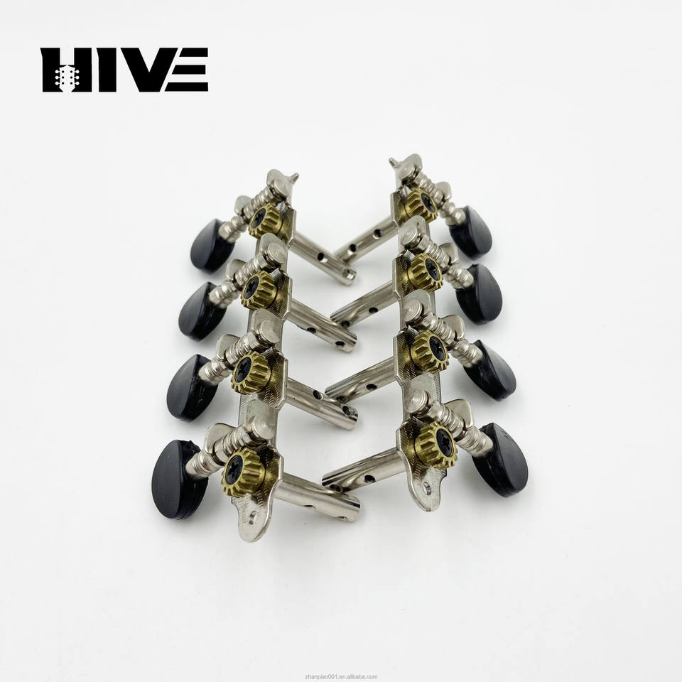 Mandolina-Diapasón de columna de acero de doble orificio de 4 cuerdas con 8 cuerdas, clavijas de afinación redondas pequeñas negras, instrumento musical nacional