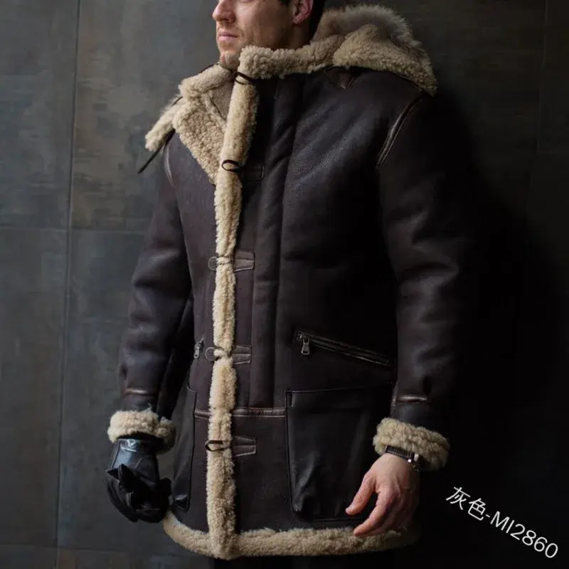 Abrigo de Invierno de Piel Sintética para Hombre Mandylandy, Chaqueta de Gamuza con Cuello Camisero, Gruesa y Cálida