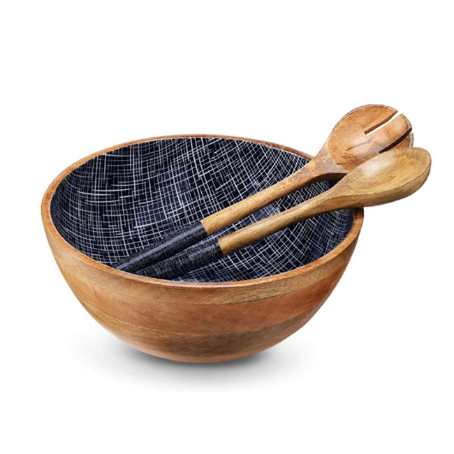 Cuenco de madera de Mango con diseño de impresión, vajilla para servir comida segura, cuenco de madera hecho a mano, Axiom acentos para el hogar, venta al por mayor