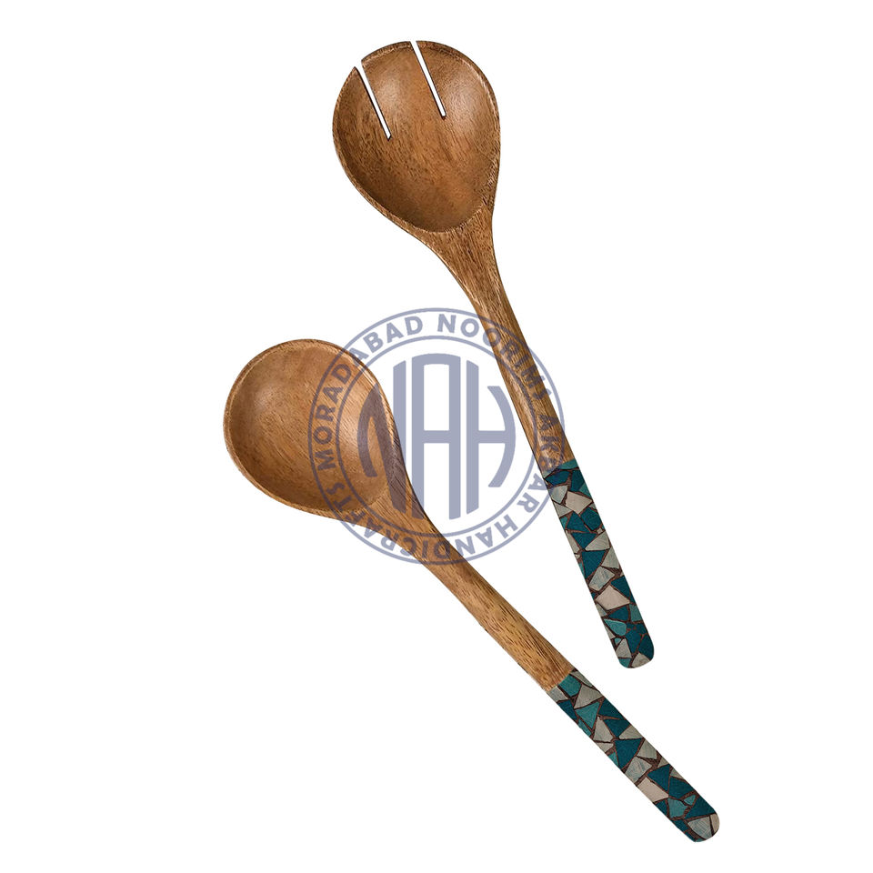 Mango madera esmalte cuchara y tenedor utensilio conjunto rústico hecho a mano cubiertos utensilios de cocina al por mayor pedido a granel fabricante