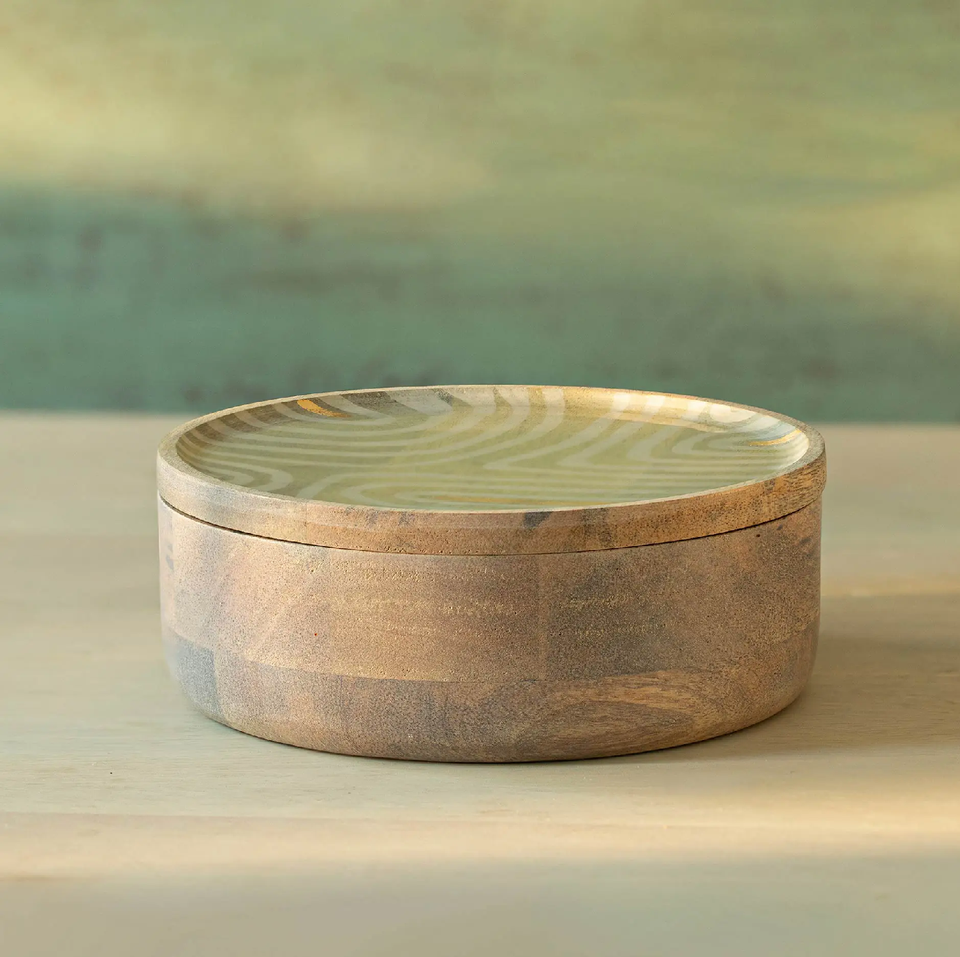 Caja Roti de madera de mango de alta calidad con tapa desmontable, utensilios de cocina de forma redonda, contenedor Chapati fabricado por un proveedor indio