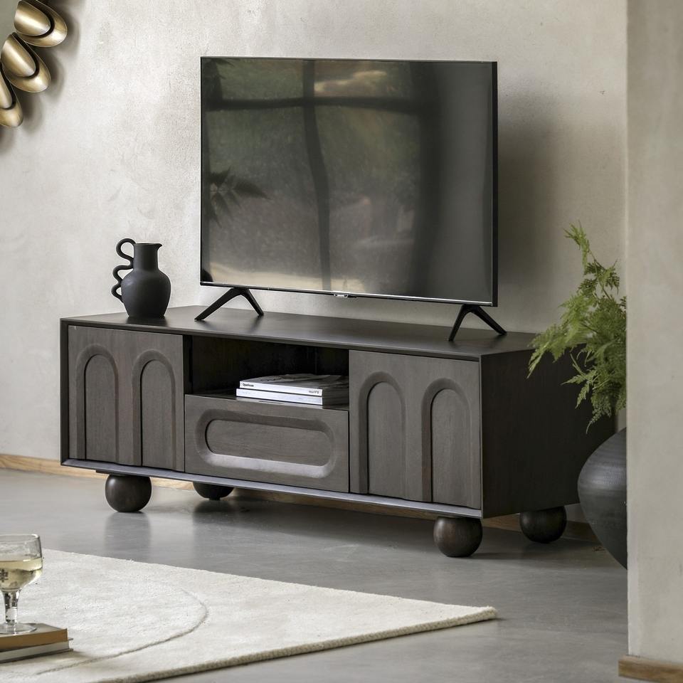 Unidad de Tv de madera de mango con pies de bola Arco Caspio Casa Caoba Suar Madera Sala de estar Minimalista Simple Buffet Cabbinet 1910116