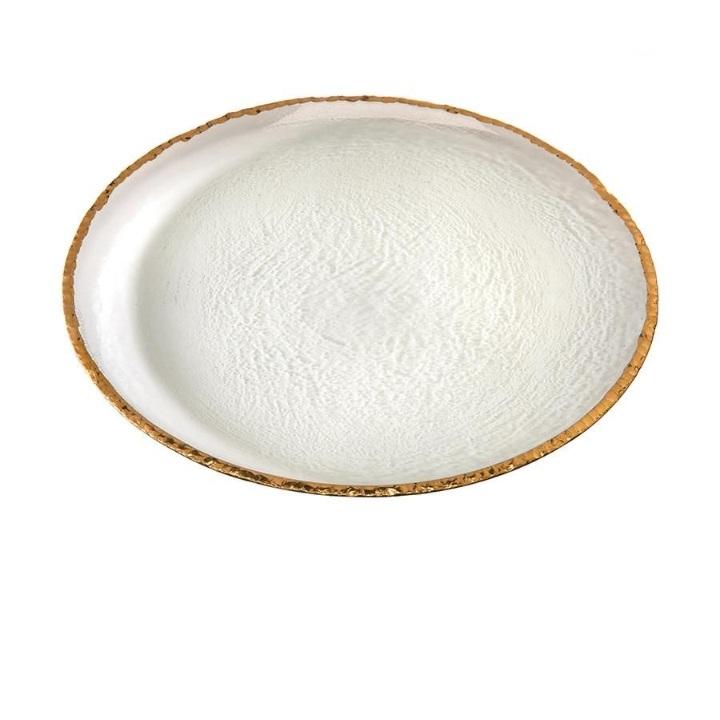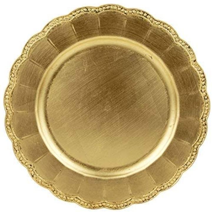 Plato de servicio redondeado decorativo de madera de Mango, plato de cargador de artículos de catering para servidor de alimentos hecho a mano