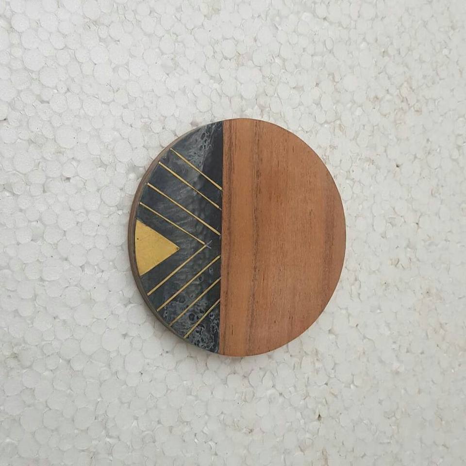 Juego de posavasos redondos de madera de mango con rayas de resina y diseño de alambre metálico, tapetes y almohadillas, posavasos para bebidas al mejor precio