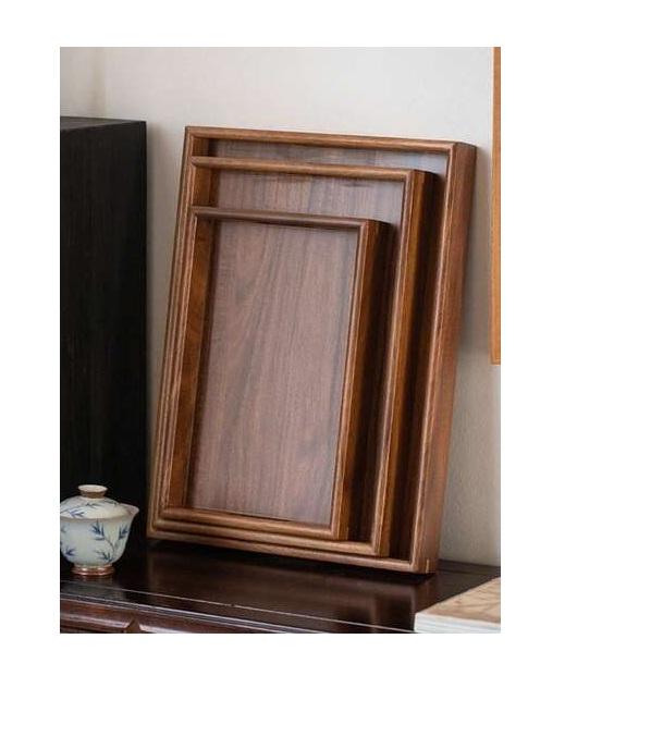 Bandeja rectangular de madera de mango, diseño artesanal, acabado duradero, perfecta para servir bocadillos en la cocina o mesa de comedor.