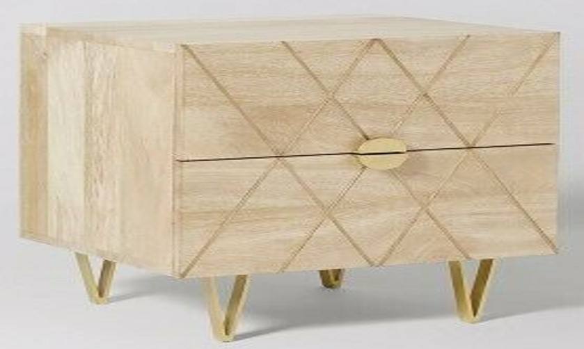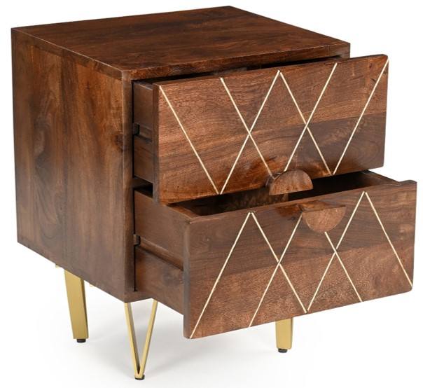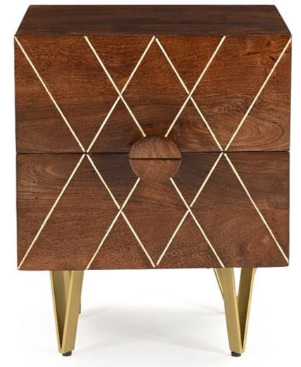 Mangoo-Mesita de noche moderna de 2 cajones con incrustaciones de madera y latón para dormitorio, sala de estar, comedor, hogar, apartamento, Hotel, uso escolar