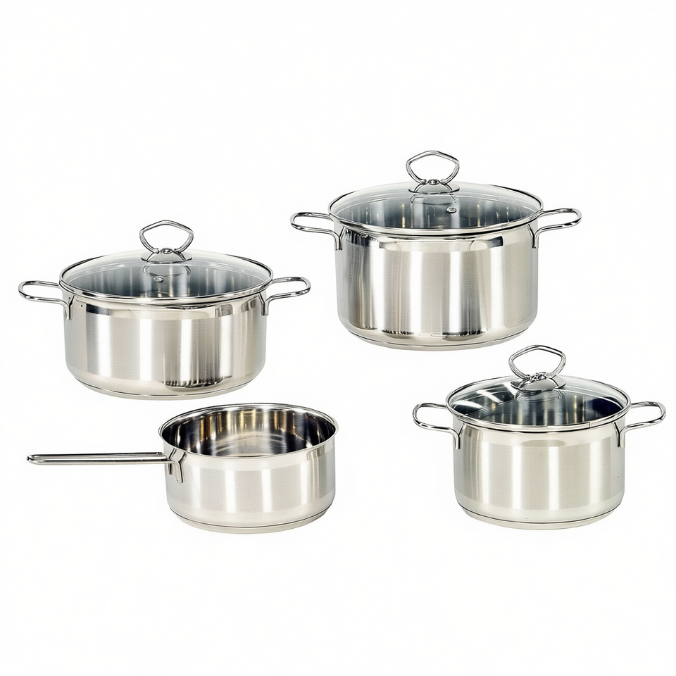 Juego de ollas de acero inoxidable Manhattan de 4 piezas con tapas para uso en estufa