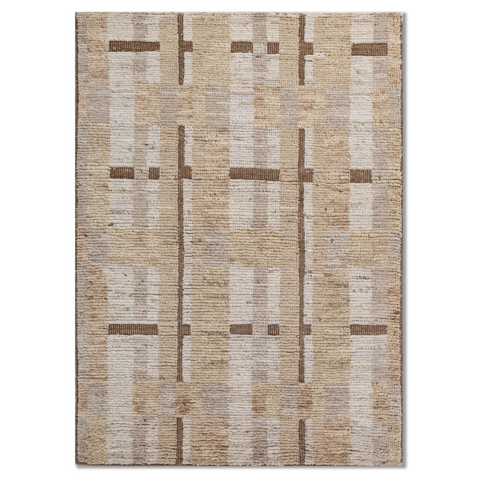 Alfombra de Lana Tejida a Mano Manifest Ivory Re-1607 con Patrón Geométrico Abstracto para Sala de Estar, Pasillo, Rectangular, Estilo Tabriz para Adolescentes