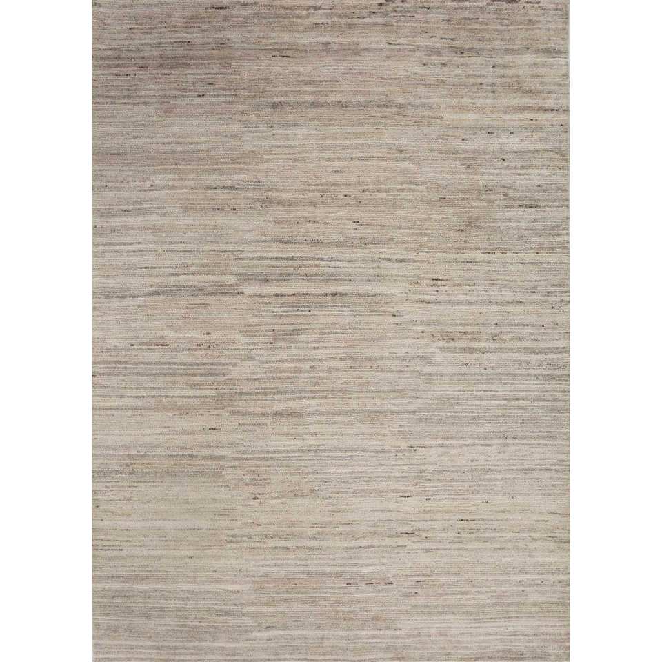 Alfombra Rectangular de Lana Afgana Tejida a Mano, Estilo Boho, con Parches de Rayas Color Marfil, Modelo Re-1487, para Sala de Estar, Pasillo u Hogar