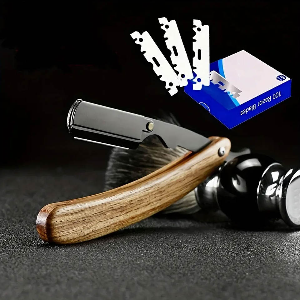 Maquinilla de Afeitar Manual con Mango de Madera, Maquinilla de Afeitar de Borde Recto de Acero Inoxidable con 10 Cuchillas para Depilación, Salón de Peluquería y Uso Doméstico